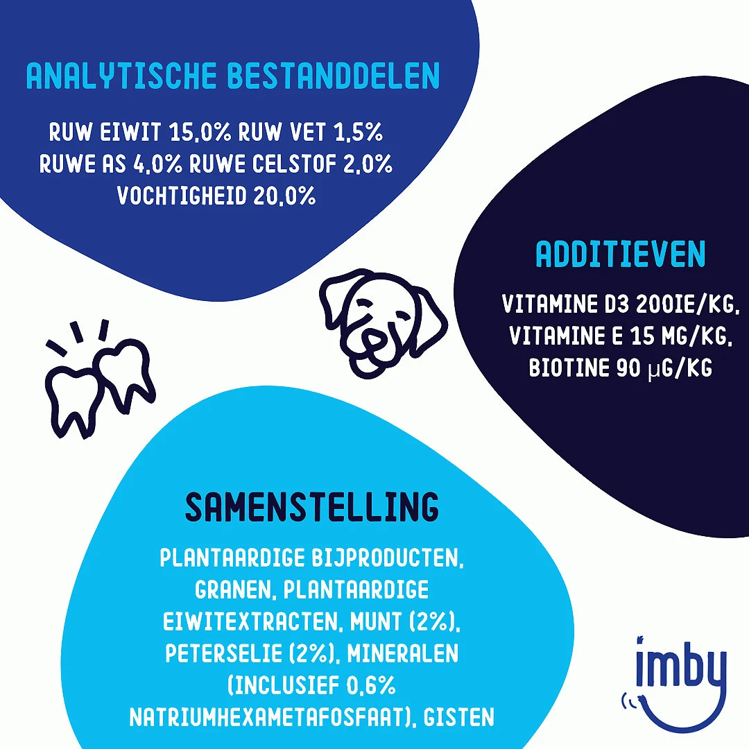 Deze plantaardige dental sticks helpen om de tanden te reinigen en tandplak te verwijderen. Munt en peterselie garanderen een frisse adem en versterken het tandvlees.