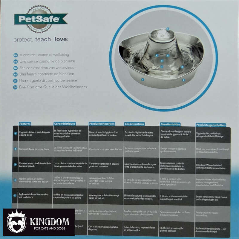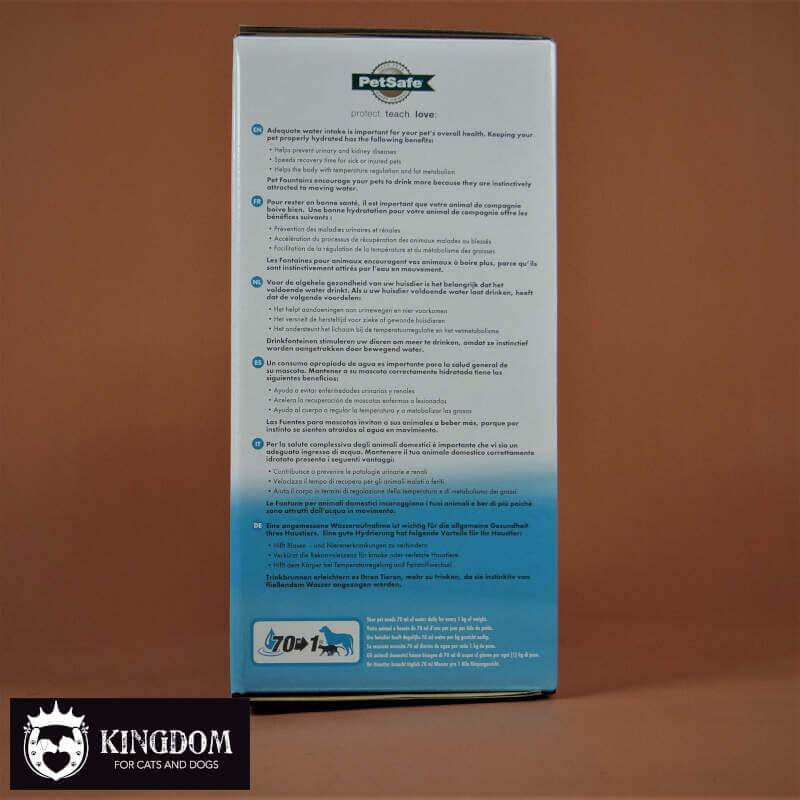 Huisdieren worden van nature aangetrokken door stromend water, waardoor het vers gefilterde en circulerende water van de waterfontein er op natuurlijke wijze voor zorgt dat ze meer drinken. De stoere RVS SeaSide fontein is eenvoudig schoon te maken en vormt daarmee een hygiënische manier om ervoor te zorgen dat huisdieren toegang hebben tot fris water, blijven drinken en daarmee gezonder blijven.