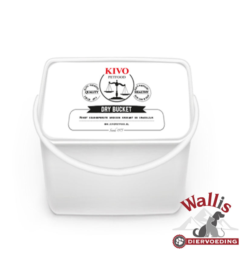 Een Dry Bucket voor 15 Kilo koudgeperste brokken.