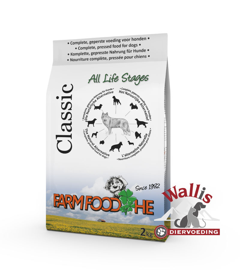 Farm Food HE is een zeer hoogwaardige ‘High Energy’ geperste voeding voor elke hond, ongeacht leeftijd, activiteit of ras. Dit noemen we het ‘All Life Stages’-concept en is gebaseerd op het gegeven dat de spijsvertering bij honden nog steeds gelijk is aan die van hun voorouder, de wolf. In de natuur eten wolven en andere hondachtigen, ongeacht hun leeftijd van hetzelfde prooidier; jonge en drachtige dieren eten meer en oudere dieren eten minder. Dit alles draagt er onder andere aan bij dat pups zeer gelijkmatig groeien zonder vervelende groeipijnen.