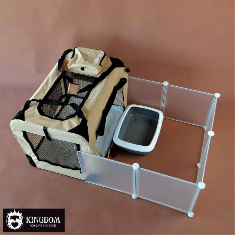 Handig om de uitloop ruimte klein te houden tijdens de zindelijkheidstraining rond de leeftijd van 3 à 4 weken en om de bewegingsruimte daarna steeds een stukje verder te vergroten. De hoogte van de panelen is voor de moederpoes prima om overheen te springen en voor de fokker om makkelijk bij de kittens te kunnen voor het weegmoment, om ze snel op het kittenbakje te kunnen zeten, eten neer te zetten en het nest te verschonen.