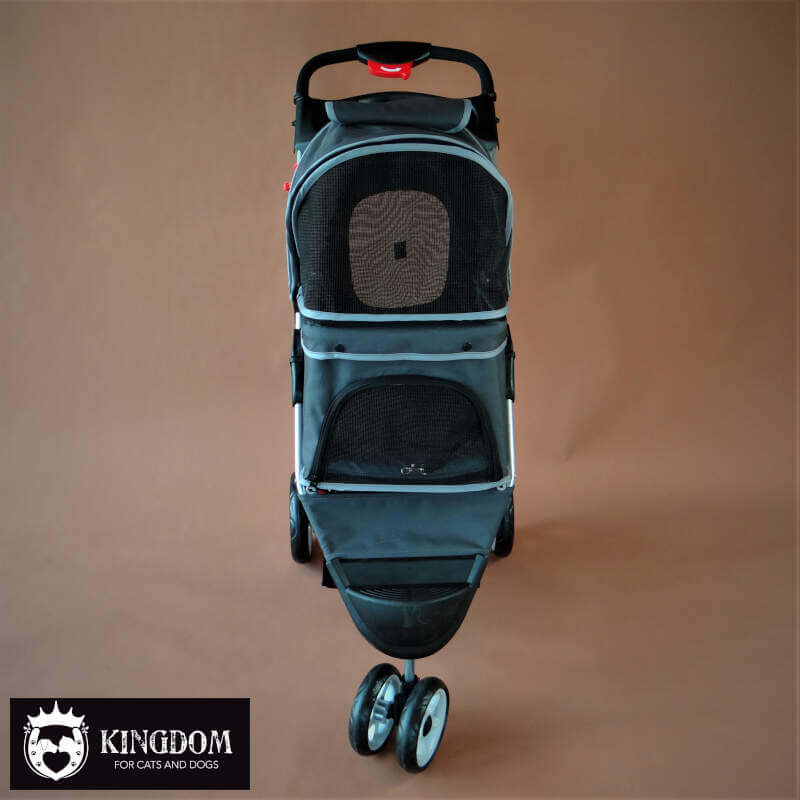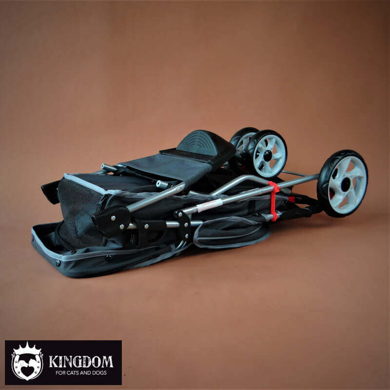 Met 2 veiligheidsriempjes waar je eventueel het tuigje van je dier aan vast kan zetten zodat je de kap open kan zetten. Met 3 wielen is deze pet buggy super wendbaar en doordat hij opklapbaar is kan je de buggy compact weg zetten. Laat je de buggy uitgeklapt staan, dan heb je grote kans dat hij ook als slaapplek wordt gebruikt.