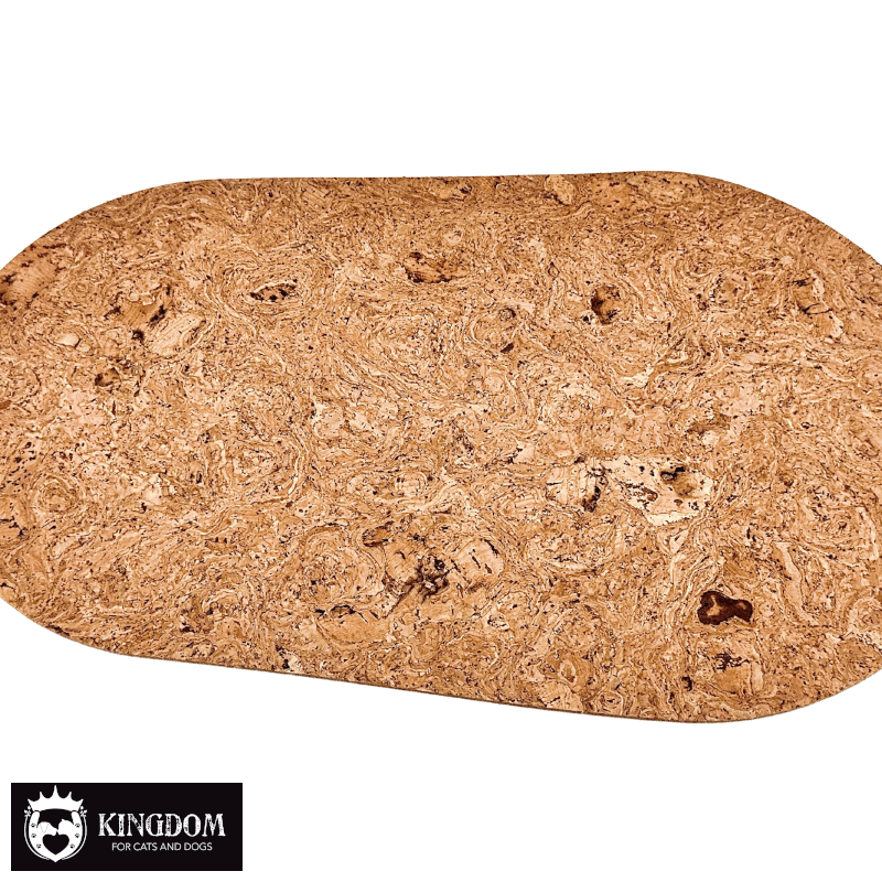 Kurk is een hernieuwbaar natuurproduct dat wordt geoogst zonder bomen te kappen. Hierdoor is het een duurzame keuze voor huisdiereigenaren die graag milieubewust shoppen. Kurk is bovendien licht van gewicht, maar dankzij de compacte structuur biedt het toch voldoende massa om stabiel te blijven liggen. Het materiaal dempt geluid, voelt warm aan en is ongevoelig voor geurtjes. Ideaal voor in de eethoek van je huisdier.
