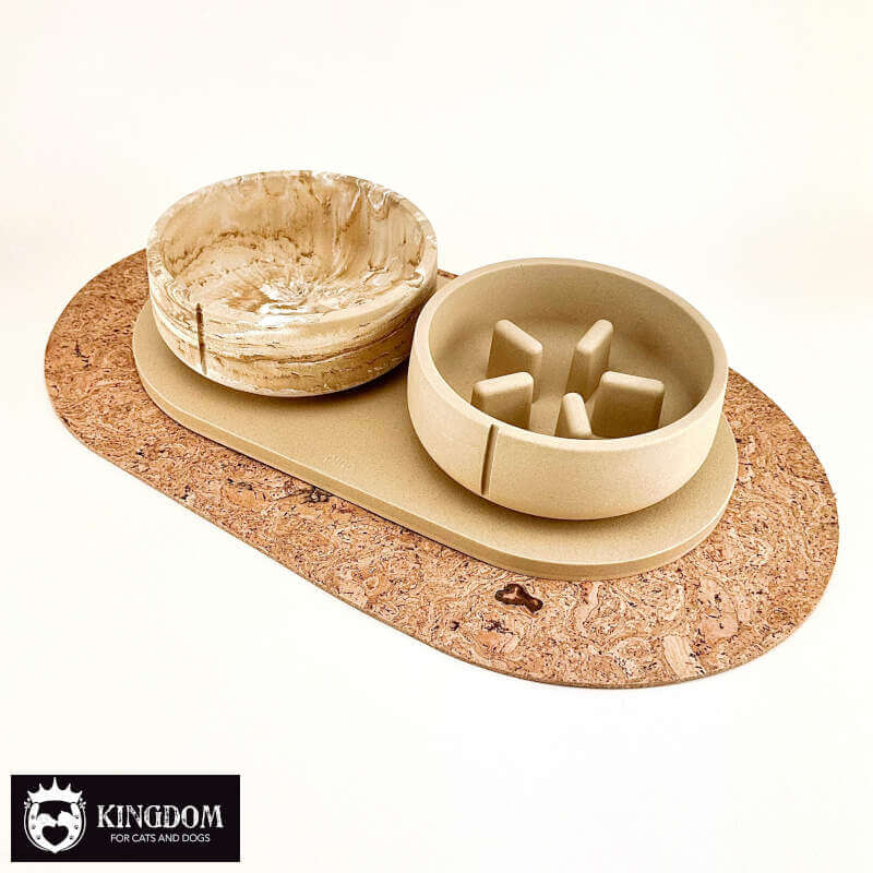 Natuurlijk antislip: de structuur van kurk zorgt voor grip; daardoor schuiven voerbakken niet heen en weer tijdens het eten.