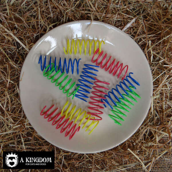 Deze spiraalvormige veren zijn kleurrijk, licht van gewicht en houden uw kat actief. Zodra uw kat een mep tegen het veertje geeft wordt er een soort flipperkast effect gecreëerd. Deze spiralen zijn dan ook goud waard voor uw kat doordat ze zo veel plezier geven in het dagelijks leven van uw kat.